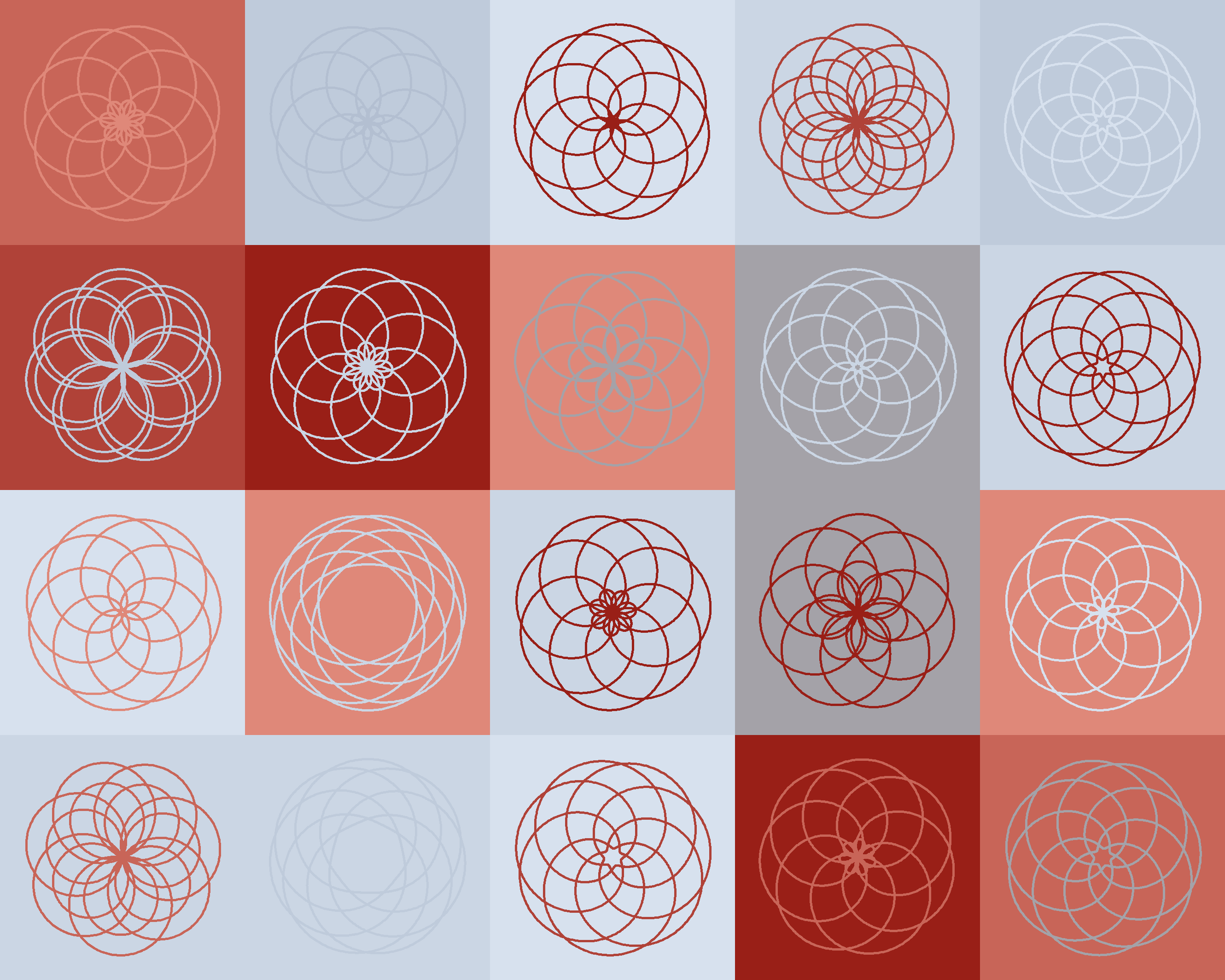 644 Grid Of Uniform Repeated Limacons (Grey to Red (9)) 7 5 0 0