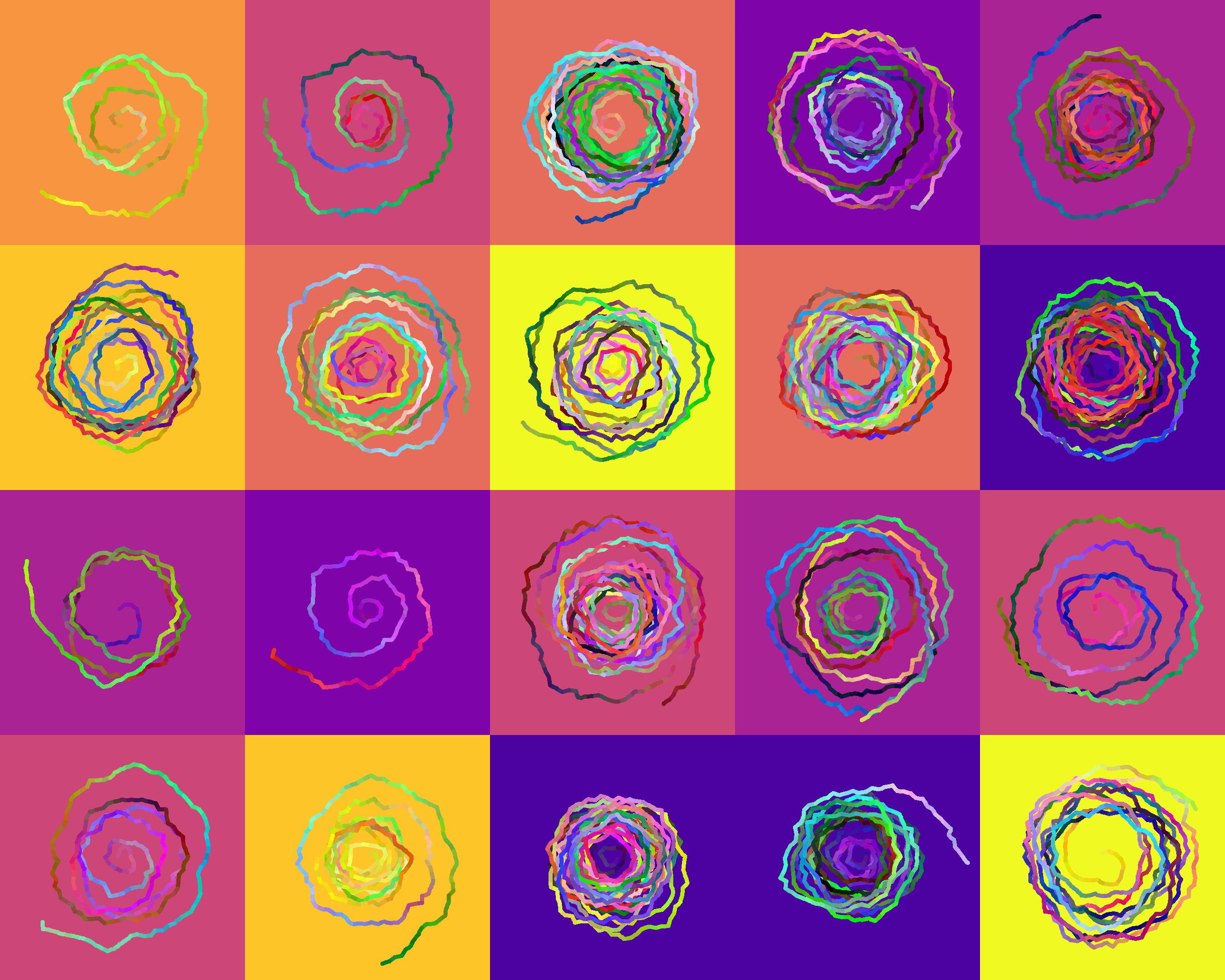 666 Wobbly Spirals On Squares Color Gradient (Plasma (9)) 9 42 88 26