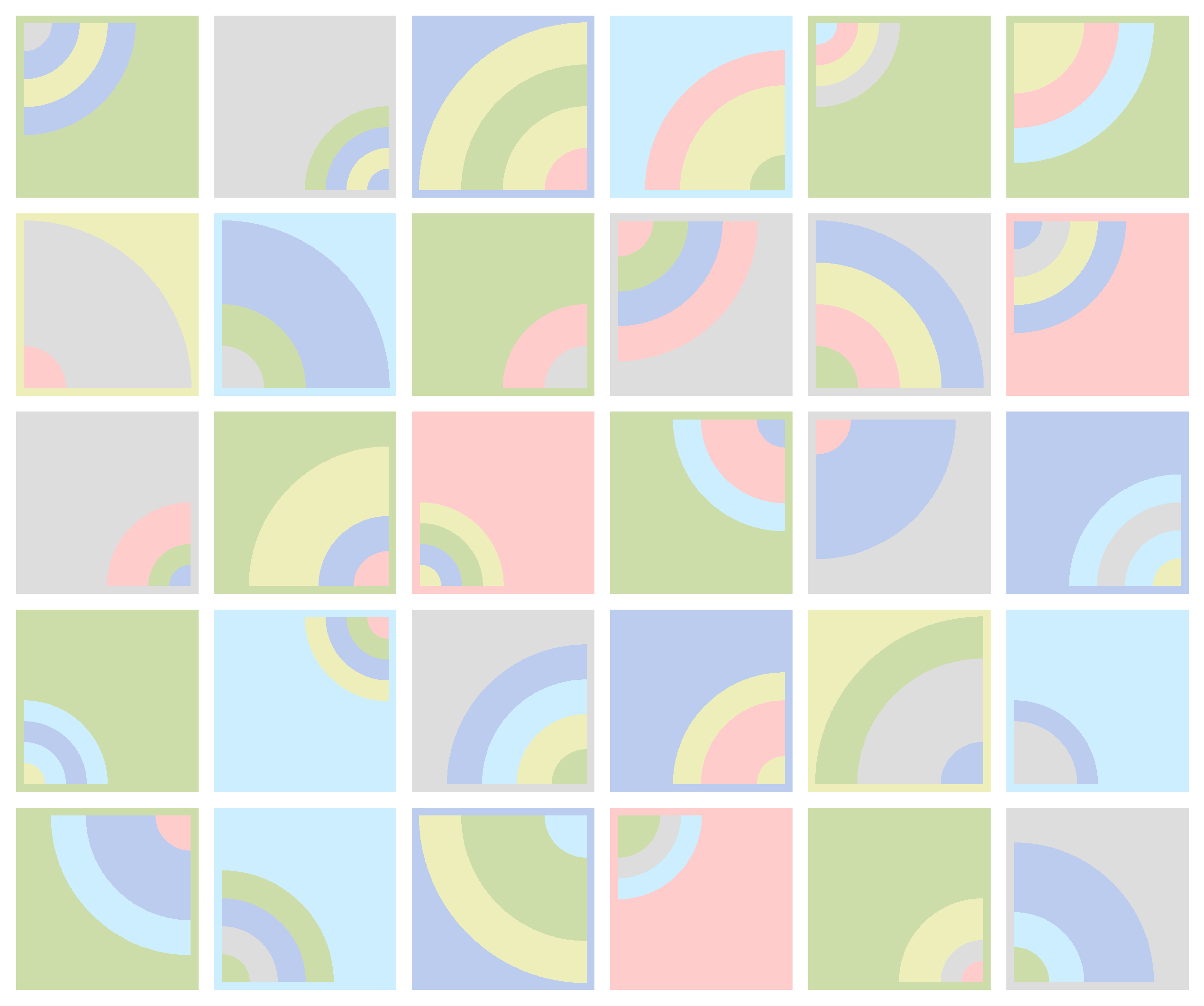 499 Spaced Concentric Quadrants On Squares (Tol Pale (6)) : The sunset has no green in it despite what color blind people may think
